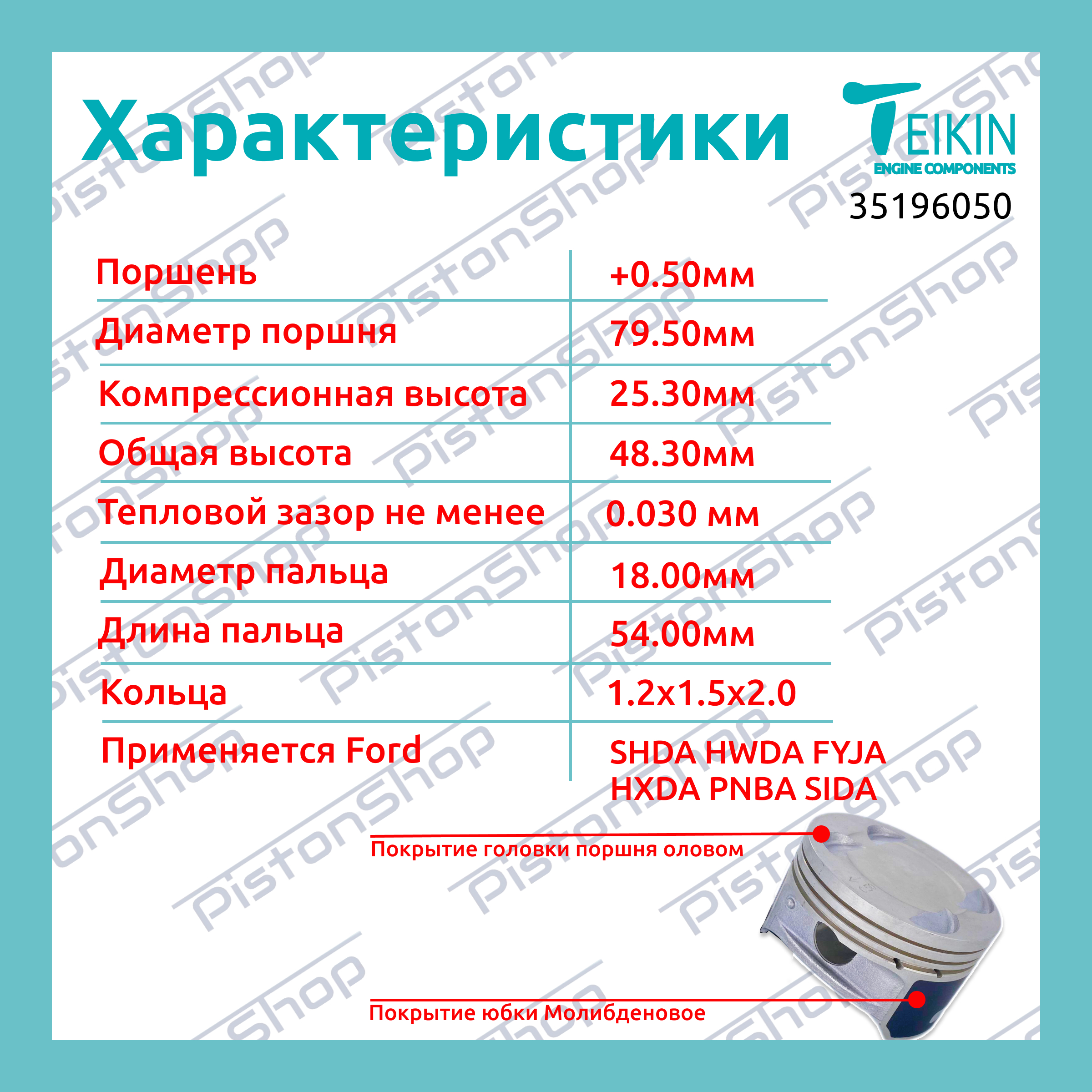Поршни Ford 1.6 115-125л.с +0.50 Teikin с кольцами TP